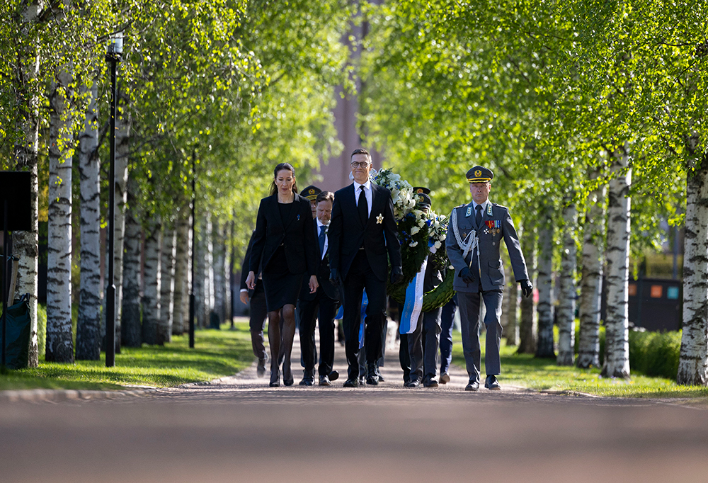 Tasavallan presidentti Alexander Stubbin ensimmäinen kaatuneitten muistopäivä valtion päämiehenä alkoi perinteisesti kunnianosoituksilla Hietaniemen hautausmaalla. Stubbin ja hänen puolisonsa Suzanne Innes-Stubbin lisäksi seppeleenlaskutilaisuuteen osallistuvat muiden muassa Puolustusvoimain komentaja, kenraali Janne Jaakkola sekä Helsingin pormestari Juhana Vartiainen.