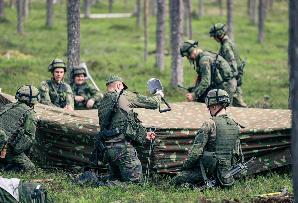 Telttojen kasaaminen alkoi sujua hyvin myös alokkailta, joilla ei ollut aiempaa kokemusta asiasta. Kuva: Oskari Aumo