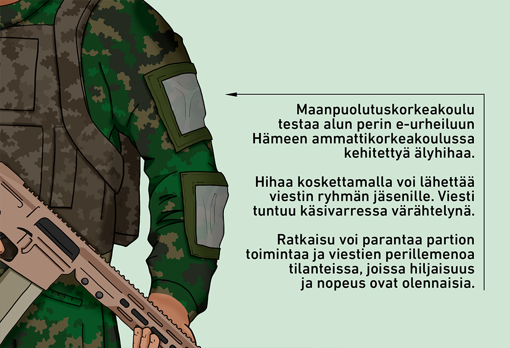 – Sotilaskäytössä hyödynnetään erilaisia siviilipuolelle kehitettyjä älylaitteita, kuten vaatteita ja muita varusteita, joilla saadaan tärkeää tietoa. Lisäksi näitä laitteita on mahdollista räätälöidä ja kehitellä vielä paremmin sotilaskäyttöön soveltuviksi, Kosola sanoo.