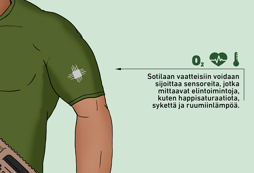 Suomessa kehitetään parhaillaan sotilaille tarkoitettua puettavaa sensoriteknologiaa. Projekti on osa Puolustusvoimien vuoden 2025 tutkimusohjelmaa ja sen päävastuulliseksi toteuttajaksi on valittu Jyväskylän yliopiston liikuntatieteellinen tiedekunta.
