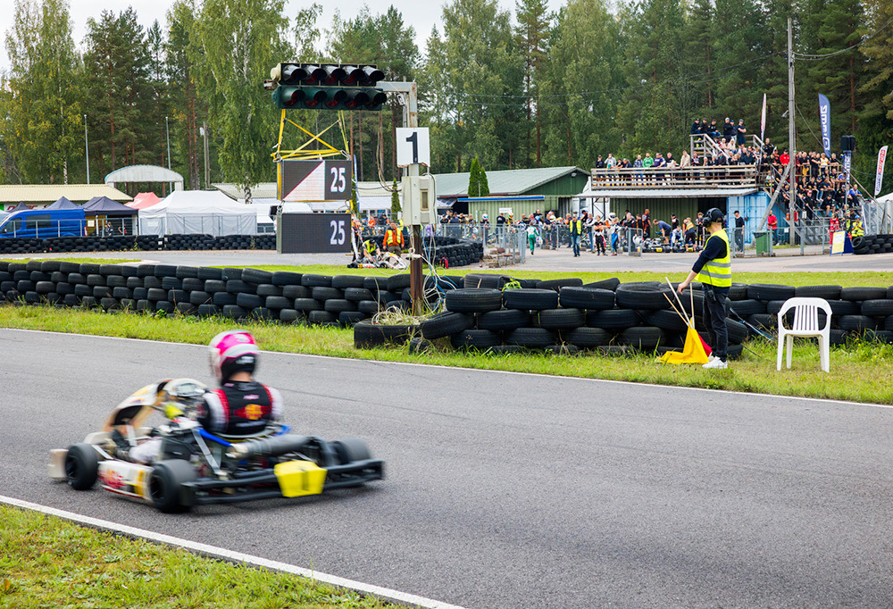 Kiire ei ole kuitenkaan muuttunut kaaokseksi. Seuraavia kisaajia organisoidaan lähtöviivalle. Aiemmat on jo katsastettu ja ohjattu takaisin varikoille. Tuomarit, järjestyksenvalvojat ja katsojat ovat kaikki paikoillaan ja ensihoitohenkilöstö sekä vaurioituneiden karting-autojen poistoon varattu "raatoauto" toimintavalmiina. Jokainen tiukka kurvi taltioituu alueelle pystytettyjen antennien kautta Starlinkin satelliittinettiin, ja tätä kautta IAME Series Finlandin Youtube-kanavalle.