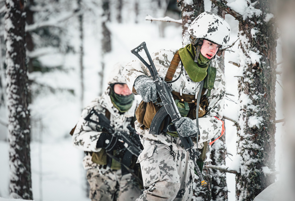 Suomalaisen sotilaan perustaitoihin kuuluu hiihtotaito, jotta liikkuminen talvella olisi mahdollisimman tehokasta.