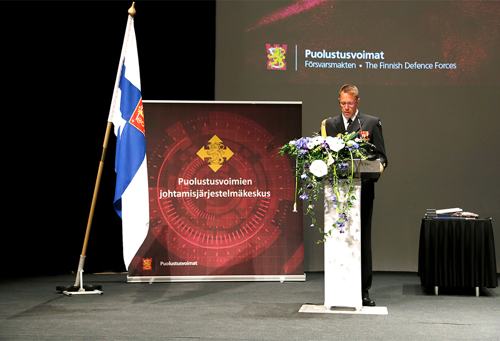 – Keskuksen perustamiselle oli aikanaan vahvat perusteet ja selkeät tavoitteet, Puolustusvoimien johtamisjärjestelmäkeskuksen johtaja, kommodori Juha Ravanti evästää avauspuheessaan.