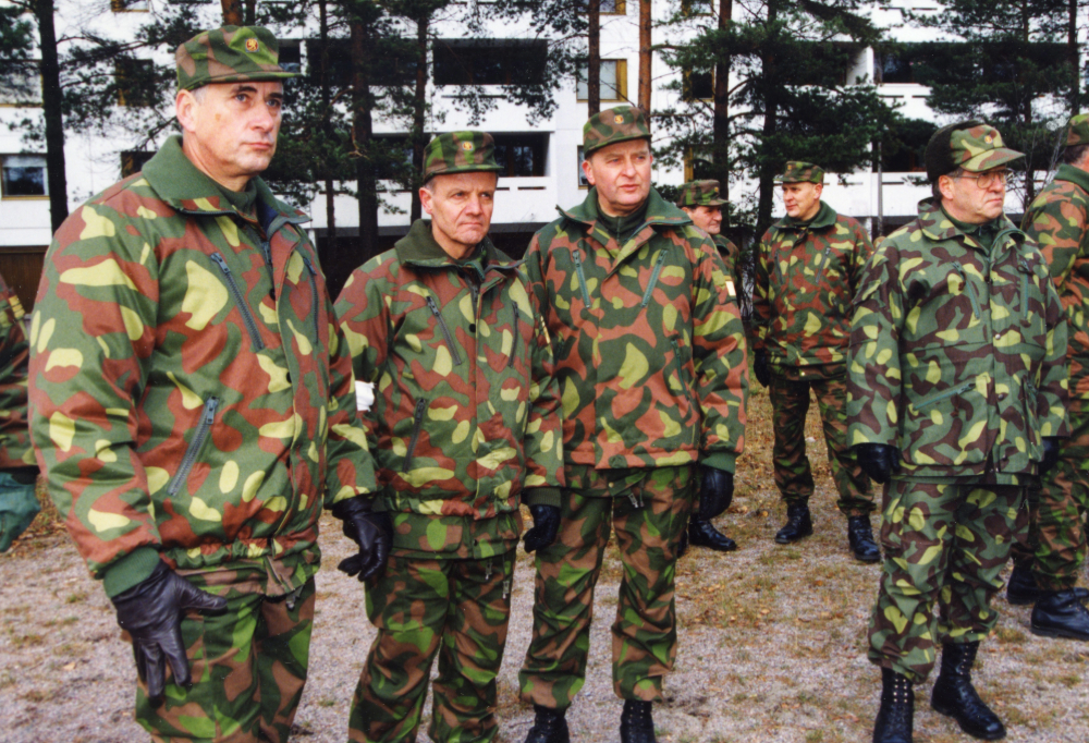 "Johtaja ei tee mitään ilman taitavia alamaisiaan." Puolustusvoimain komentaja Hägglund tutustumassa Leijona-harjoitukseen vuonna 1994. Kuva: Juhani Kandell/Puolustusvoimat