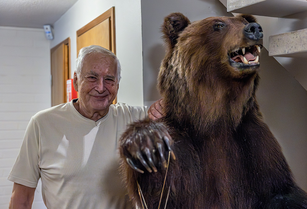 Metsästäminen on kuulunut hänen rakkaisiin harrastuksiinsa. Siitä kielii muun muassa talon alakerrasta löytyvä täytetty karhu. Itse metsästetty, tottakai.