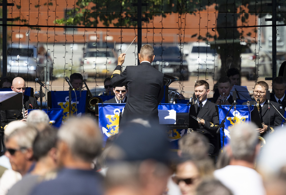 Laivaston soittokunta esiintyi päivällä Kotkan torilla. Torikahvilat- ja ravintolat tarjosivat purtavaa ja tunnelma oli kaikin puolin katossa. Kuva: Oskar von Essen