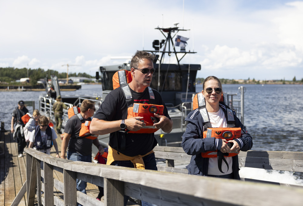 Utö-luokan huoltovene tarjosi tapahtuman kävijöille mahdollisuuden veneajeluihin. Paikalla oli reserviläisiä auttamassa pelastusliivien kanssa ja sujuvoittamassa venekyytien tahtia. Kuva: Oskar von Essen