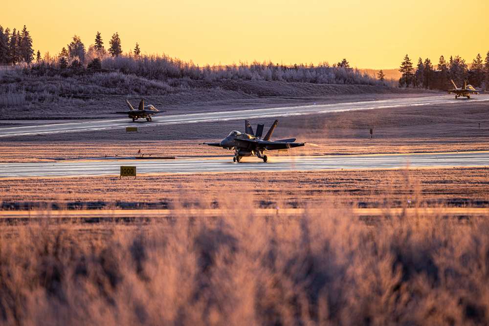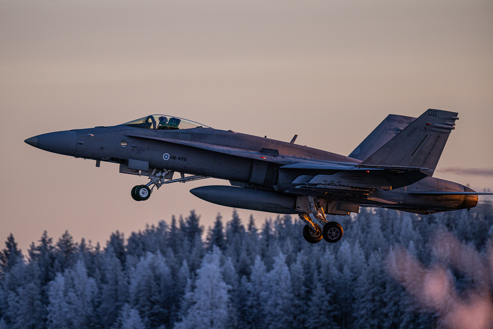 Viikon 46 aikana eri puolilla Suomea järjestettäviin harjoituksiin osallistuu yhteensä lähes 30 Hornet-hävittäjää. Kuva: Anne Torvinen / Lapin lennosto