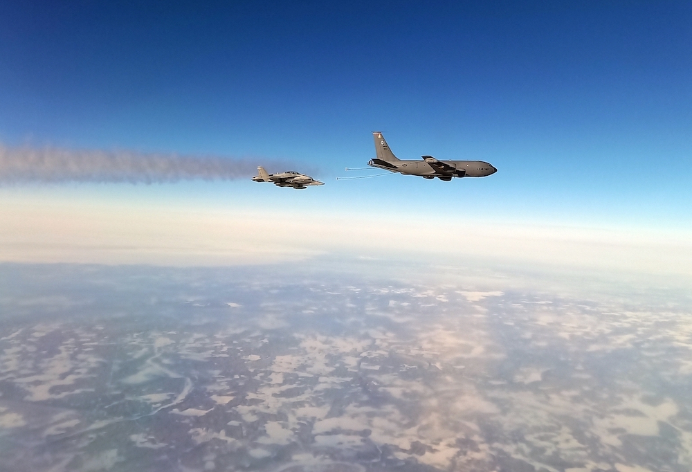Ilmavoimat järjesti vuoden ensimmäisen ilmatankkausharjoituksensa tällä viikolla Yhdysvaltain ilmavoimien 100. ilmatankkauslennoston (100th Air Refueling Wing) kanssa. Harjoitukseen osallistunut yhdysvaltalainen KC-135 Stratotanker -ilmatankkauskone operoi Ison-Britannian Mildenhallin kotitukikohdastaan käsin. Suomalaiset hävittäjät lensivät tukikohdistaan Rovaniemeltä, Rissalasta ja Pirkkalasta.