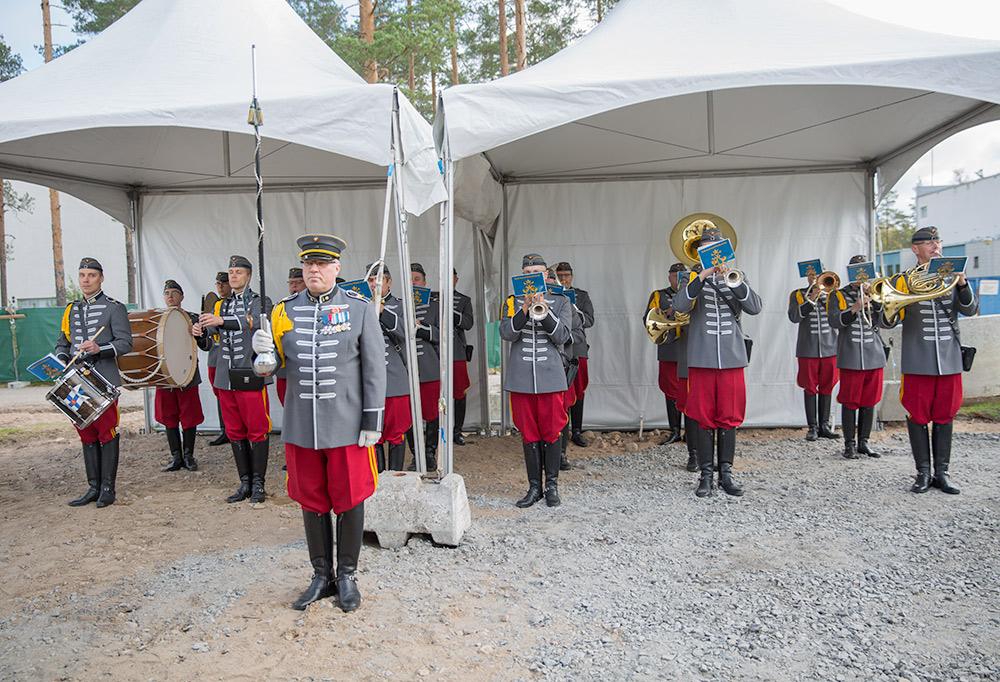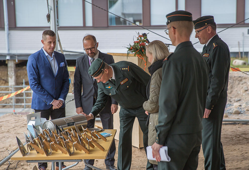 Reinikainen myös kuvaili uutta esikuntarakennusta, jonka peruskivi tilaisuudessa muurattiin.
