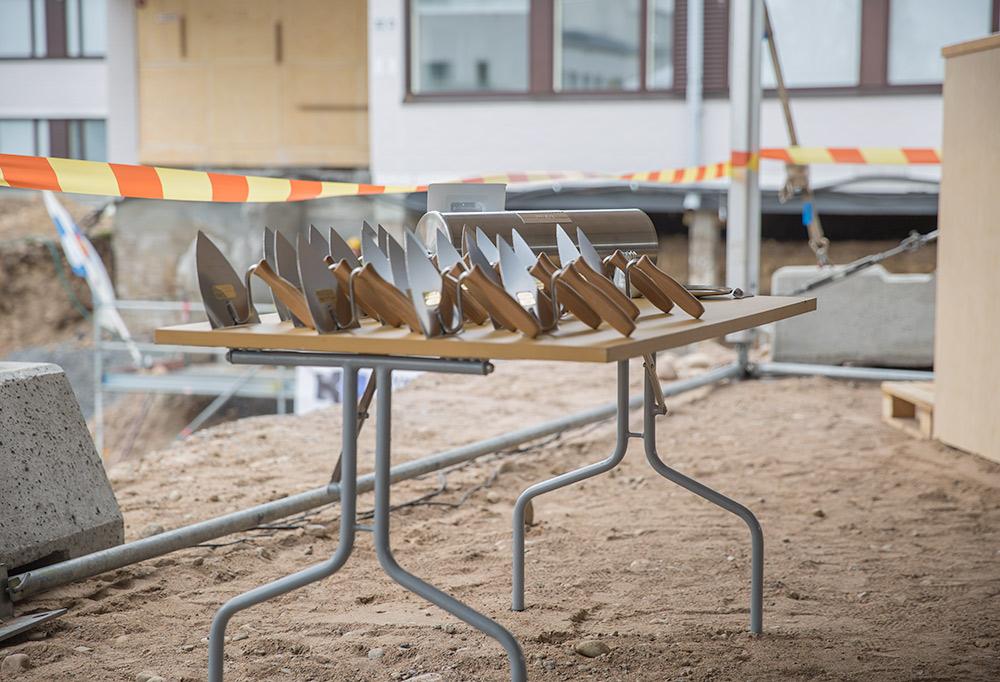 Immolan projektin valmisteluissa mukana olleita henkilöitä kävi vuorotellen kippaamassa laastia peruskiveen. Myös sisäministeri Ohisalo pääsi muuraushommiin.