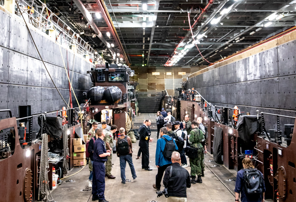 HMS Albionin sisällä sijaitseva maihinnousualus kuvattuna aluksen mediapäivänä. Kuva: Eero Tammivuori