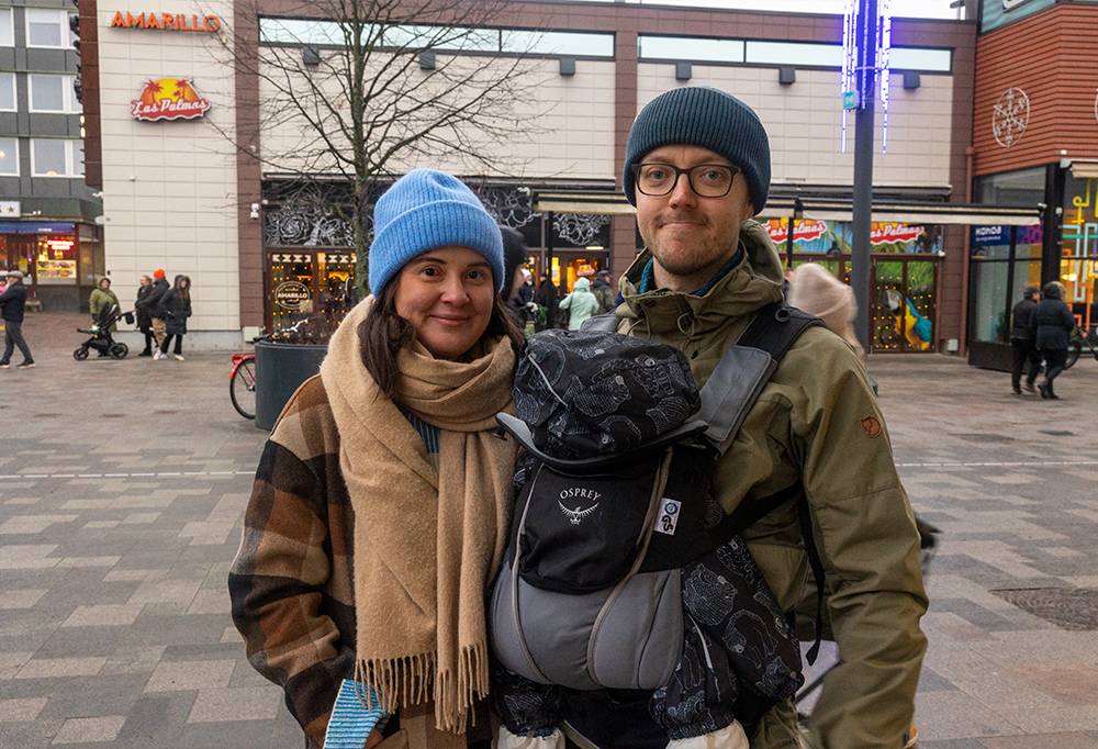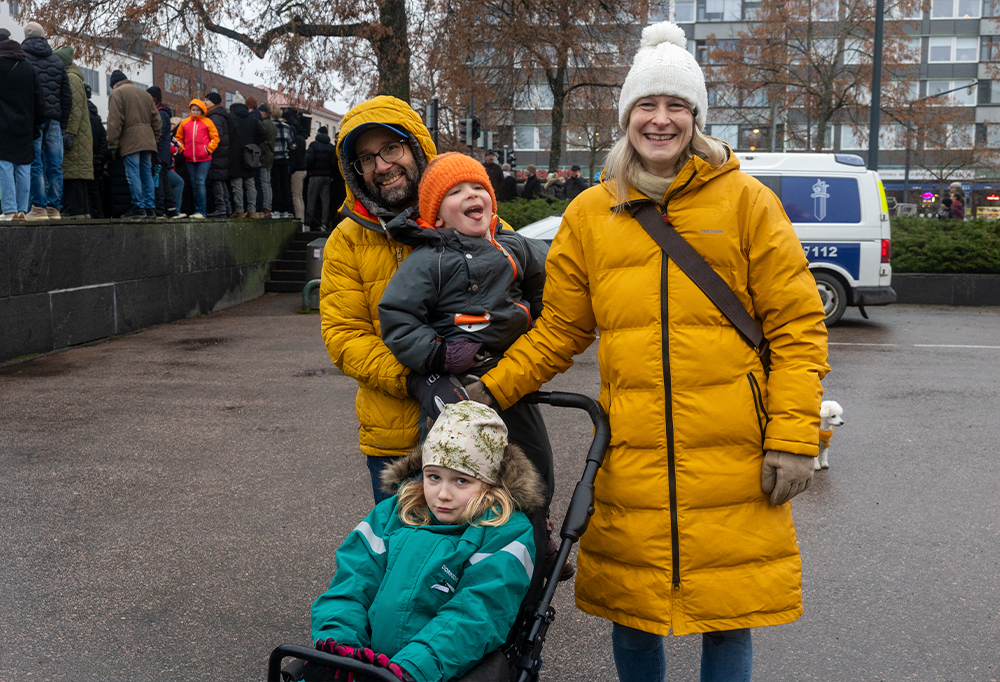 Iitiläiset Laura Sartamo ja Kanadasta kotoisin oleva Simon Garlough olivat saapuneet Elsi- ja Linus-lastensa kanssa seuraamaan paraatin ohimarssia.