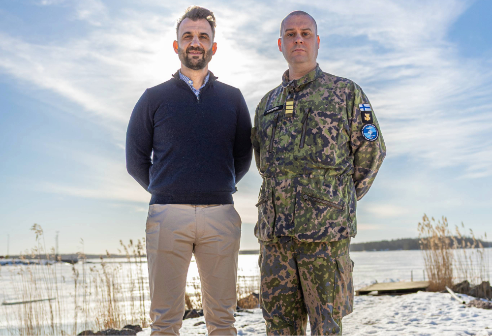Marcomin innovaatiojohtaja Ivan Yordanov (vas.) ja komentajakapteeni Aleksi Rantanen olivat tyytyväisiä harjoituksen yhteistyöhön. Kuva: Lempi Leinonen