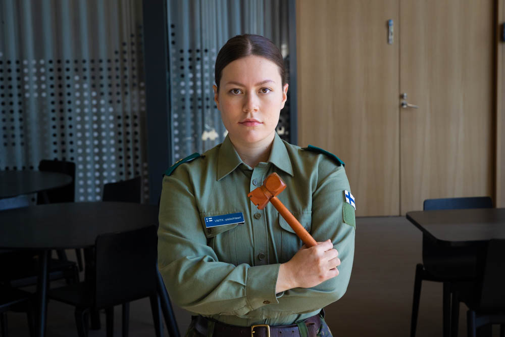 Saapumiserän 2/22 kersantti Veera Alahuhta suorittaa palvelustaan varusmiestoimikuntien pääsihteerinä Pääesikunnan koulutusosastolla. Hän haki tehtävään jo viime syksynä miehistöhaussa, ja lähti suorittamaan alokaskauden jälkeen aliupseerikurssia tehtävään vaadittavan johtajakoulutuksen vuoksi.