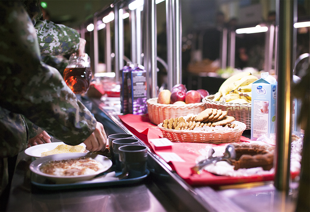 – Jouluaaton ruokavahvuus on 82 varusmiestä. Normaalisti varusmiehet syövät 600:n hengen varuskuntaravintolassa, mutta jouluaattona ruokailu on henkilöstöravintolassa. Pienempi tila tuo tunnelmaa, jossa on helpompi hiljentyä ja viettää juhlaa, Nevalainen jatkaa.