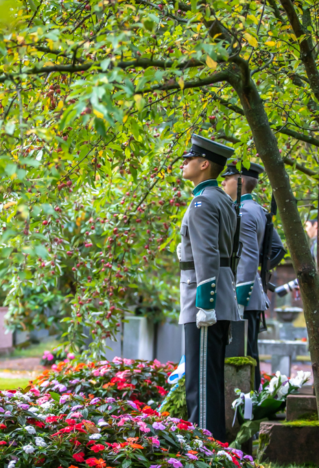 Seppeleet laskettiin Suomen Kaartin muistomerkille Vanhan Kaartin hautausmaalla.