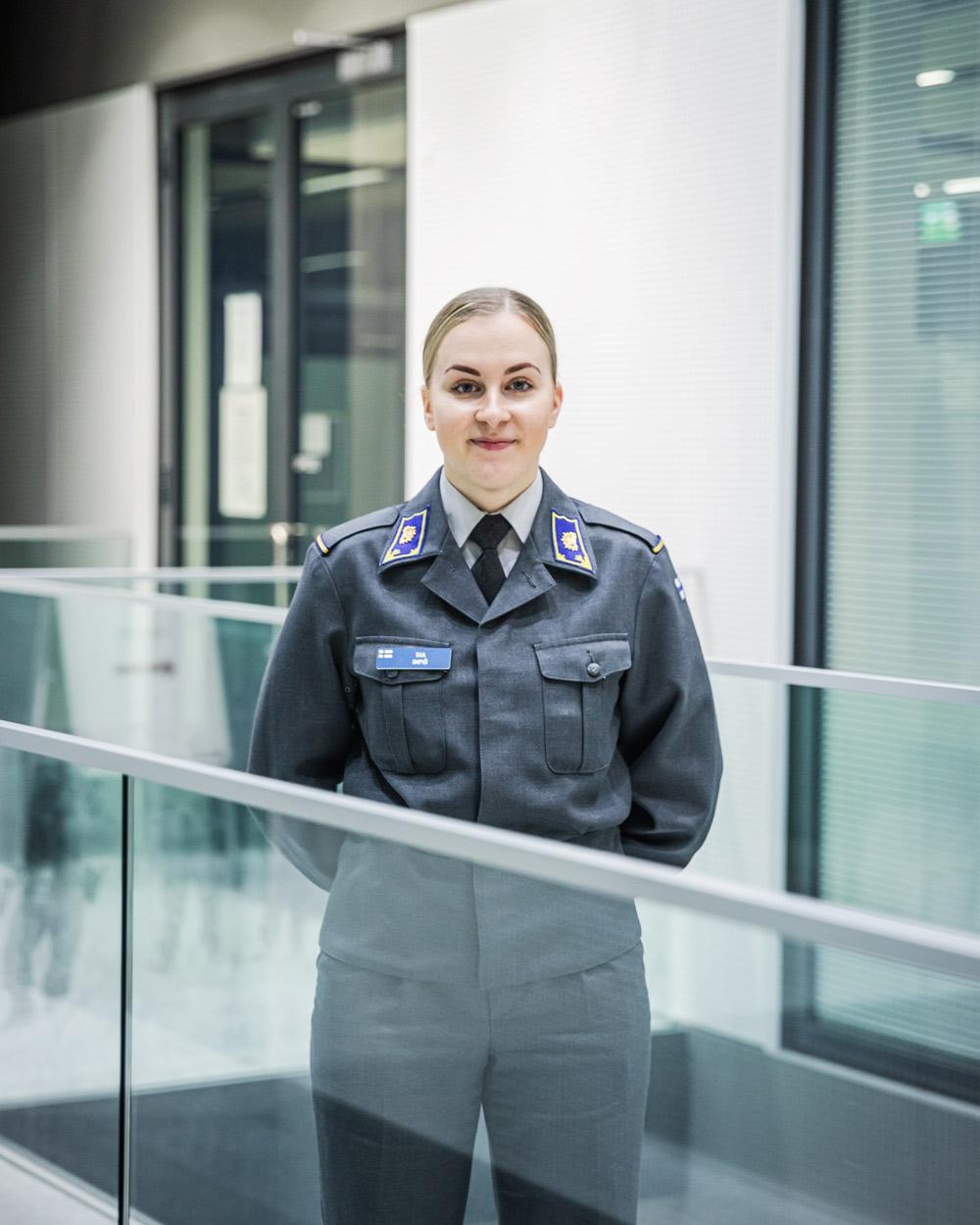 Kainuun prikaatissa viestiasemajoukkueen johtajan koulutuksen saanut Tiia Impiö, 22, halusi kantaa kortensa kekoon maanpuolustuksen saralla ja päätti lähteä inttiin erässä 1/18. Oulusta kotoisin oleva Impiö hakeutui Kadettikouluun keväällä 2020 vietettyään kaksi vuotta armeijan vihreissä ja tultuaan tulokseen, että urahan tästä täytyy tehdä.