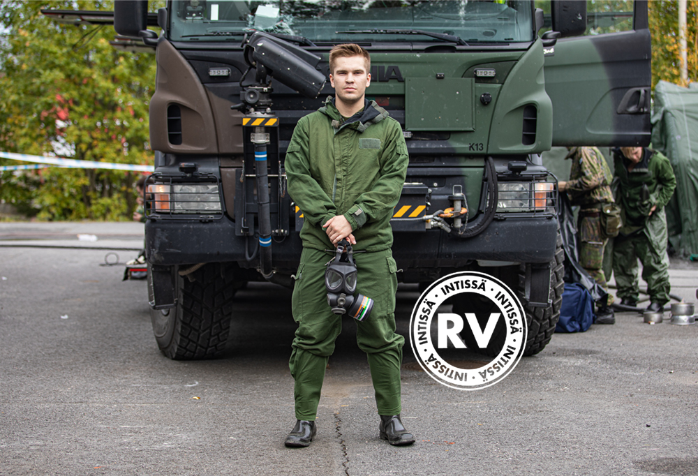 "Suojelukomppanian kuljettajana tehtävänäni on kuljettaa pelastusryhmää puhdistusajoneuvoissa ja keskiraskaissa pelastusajoneuvoissa. Palvelen siis pelastusryhmän kuljettajana, minkä lisäksi toimin vararyhmänjohtajana.