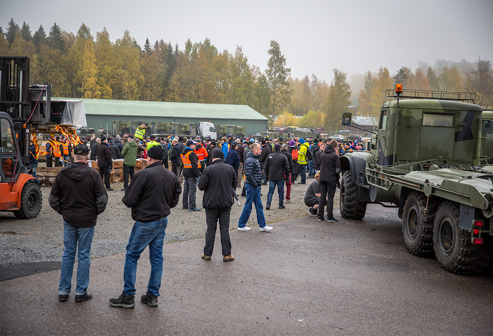 On viileä ja pilvinen aamu. Ilmassa tuoksuu hernekeitto ja munkit. Satoja ihmisiä on kokoontunut maastovärityksen omaavien tavaroiden ympärille. Land Roverit, Masit ja perävaunut on kasattu siisteihin riveihin. Ringin keskeltä kuuluu tasaisin välein huudahduksia, johon ringistä tiuhaan tahtiin äänekkäästi vastataan. Silmiinpistävistä yhtäläisyyksistä huolimatta emme kuitenkaan ole varuskunta-alueella kuljetuskomppanian tiloissa, vaan Tampereella Petsanpuistossa, jossa on käynnissä puolustusvoimien käytöstä poistetun materiaalin huutokauppa.