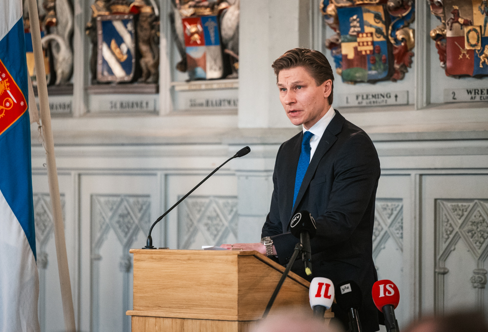 Puolustusministeri Häkkänen korosti, että Itämeren eri yhteydet ovat Suomelle elintärkeitä. Kuva: Elmeri Lehti