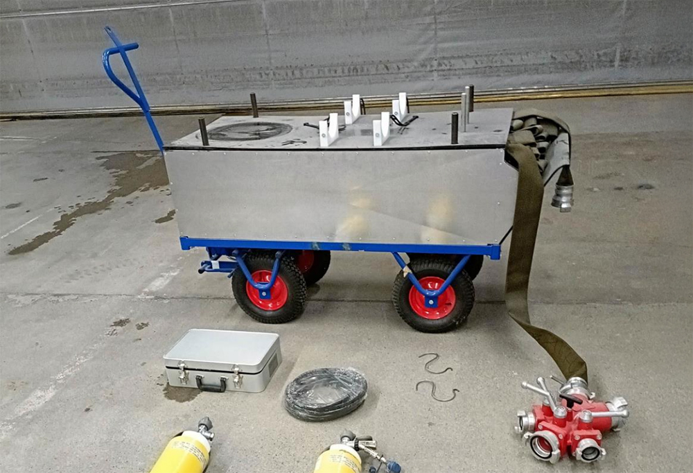 Miehet kehittivät vaunun, joka on avuksi tilanteissa, joissa tulipalo on sattunut esimerkiksi ampumaradalla, telakalla, lentokonetilassa tai luolastossa.