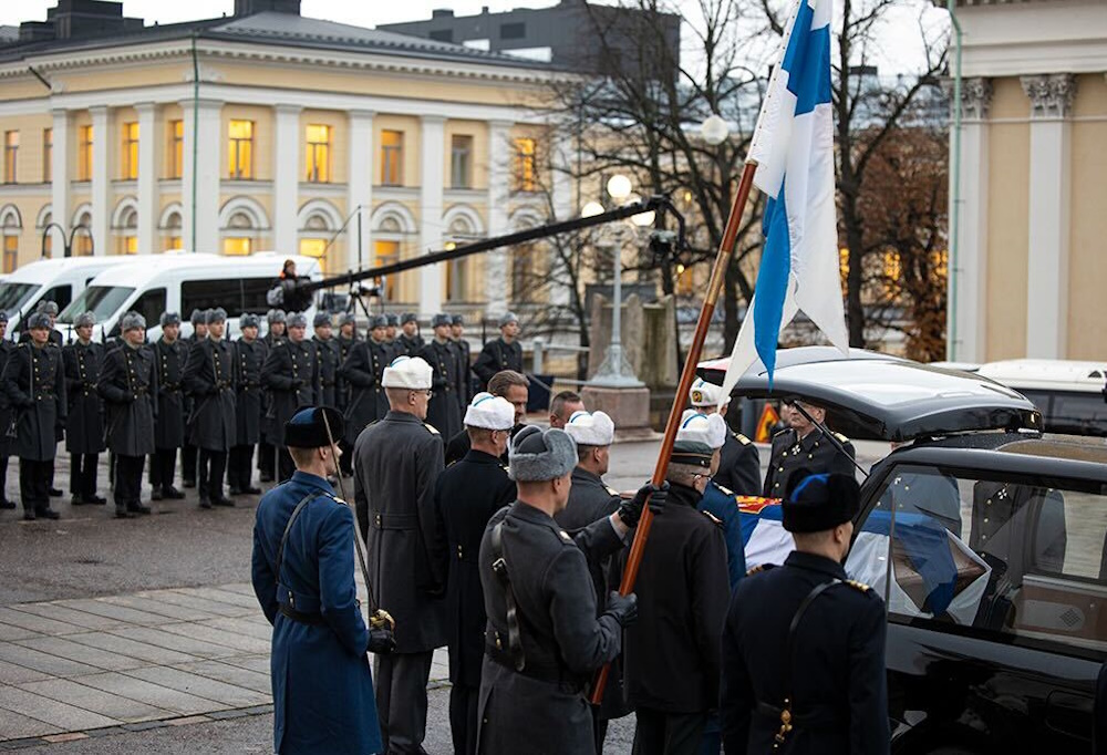 Kenraalit kantavat presidentti Ahtisaaren arkun surusaattueessa
