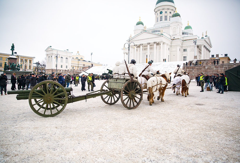 Senaatintorilla nähtiin myös kaksi hevosvetoisen tykistön perinnevaljakon asemaanajonäytöstä, joita pitivät Niinisalon Ratsastajat ry sekä Kankaanpään Seudun Tykistökilta ry. Ohjelmanumeron tarkoituksena oli demonstroida, miltä sodanaikaisen kaluston käyttö aikoinaan näytti.