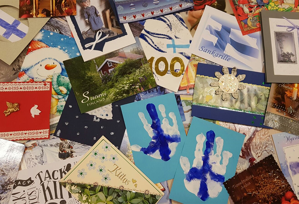 – Viesteistä paistoi läpi vahva kiitollisuus siitä, että meillä on itsenäinen Suomi, ja sitä kautta voimme opiskella käydä koulua ja elää vapaassa maassa. Korteissa oli myös omia kokemuksia ja tarinoita sota-ajalta. Lasten askartelemissa korteissa toistuivat Suomen lippu ja kynttiläaiheet.