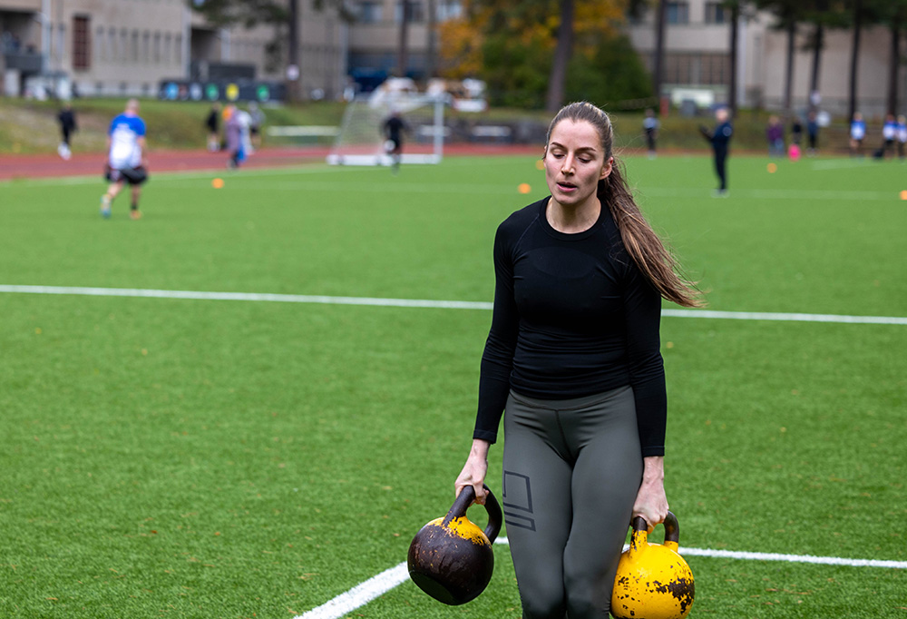 Hiki valuu pitkin Giovanna La Mela kasvoja, kun hän ja hänen tiiminsä ylittävät maalilinjan ensimmäisen kilpailupäivän viimeisessä lajissa. Takana on lähes tunti kahvakuulien kantamista, reppujuoksua ja maastojuoksua, mutta tiimihenki on pitänyt heidät liikkeessä.