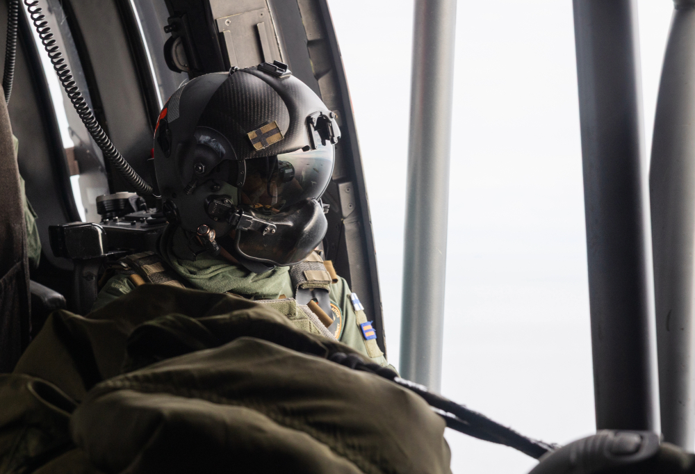 Hytti rämisee yläilmojen turbulenssissa, kun Rajavartiolaitoksen Super Puma -helikopteri suuntaa tehtäväkohdetta päin monen kymmenen solmun vauhdilla. Kopteri sukeltaa kohteen lähestyessä.