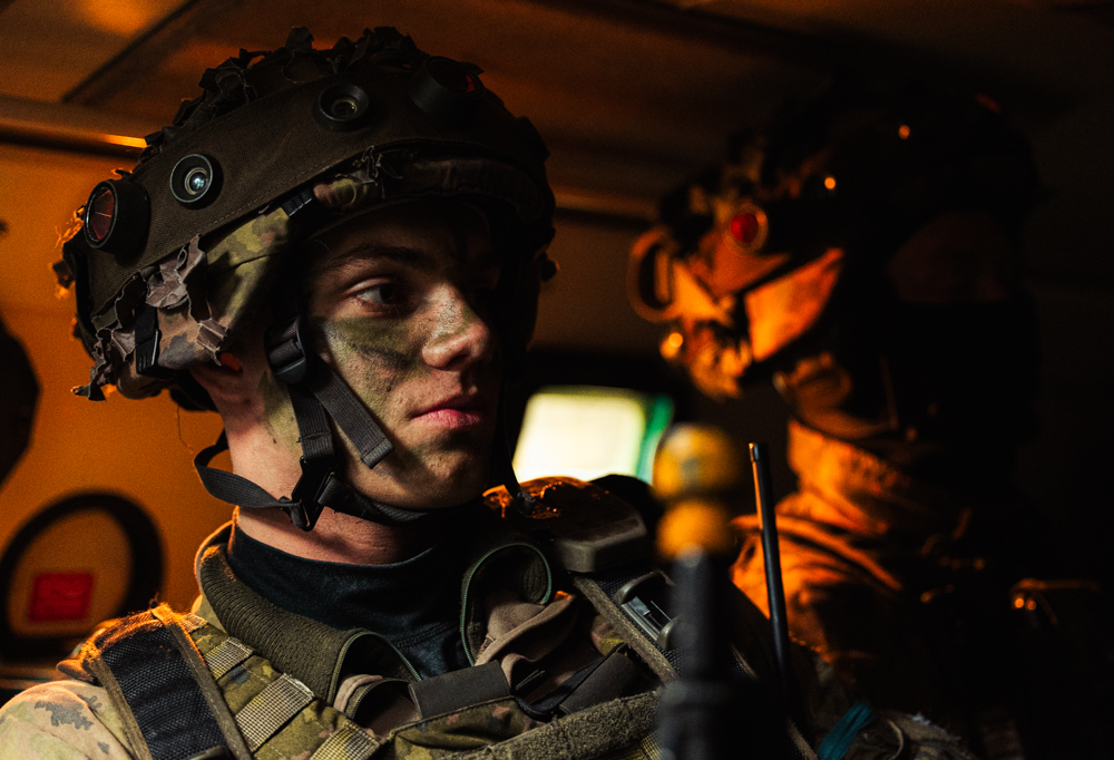 Tunnelma täyteen ahdetussa panssariajoneuvossa on jännittynyt ennen harjoitusta. Kuva: Elmeri Lehti