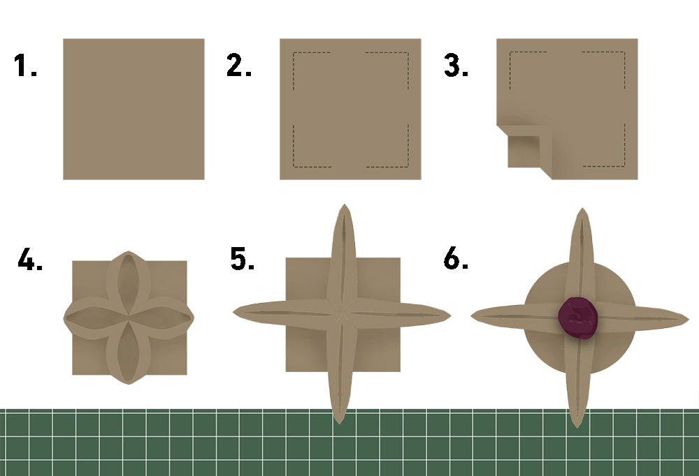 3: Nosta irti leikatut uloimmat reunat keskelle.