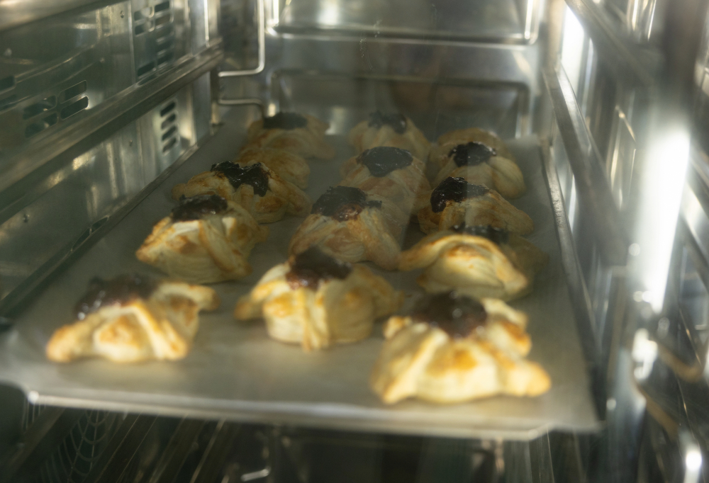 6: Lusikoi hillo keskelle ja paista 225 asteessa uunin alaosassa noin 15 minuuttia.