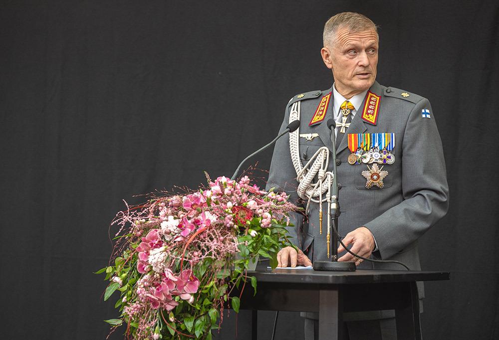 Kenraali Kivinen kunnioitti lottien perintöä puheessaan. Kuva: Juho Lehtonen