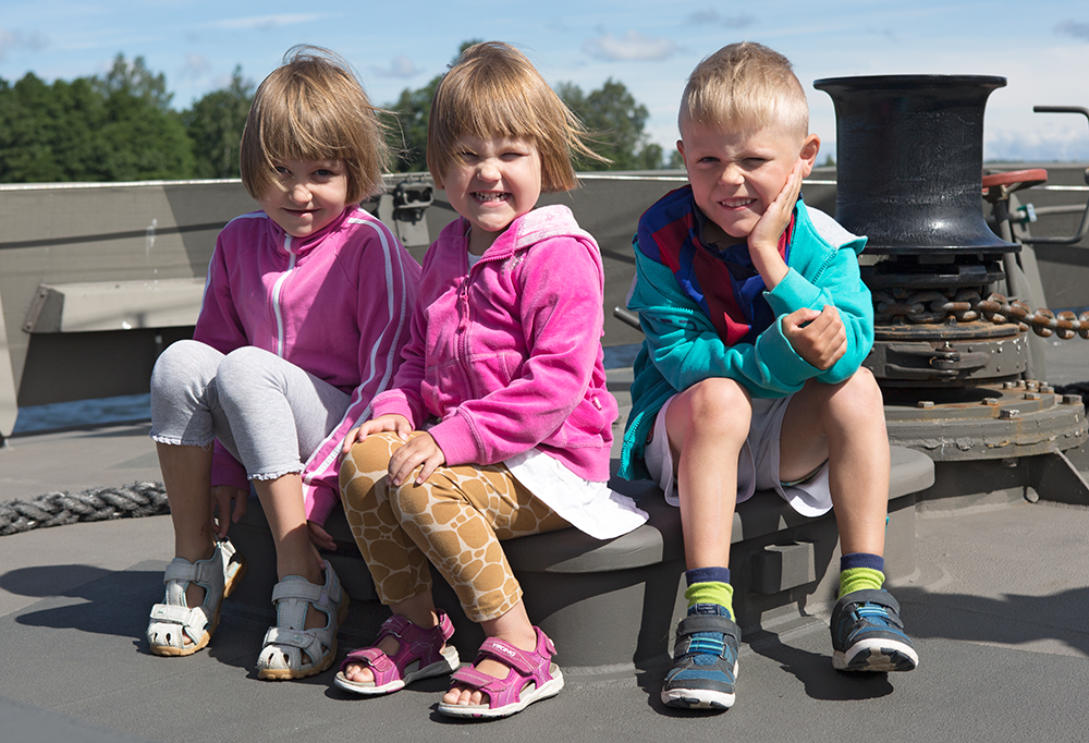 Pohjoissatamaan oli saapunut paljon lapsiperheitä tutustumaan aluksiin. Backmanin perheen kolme lasta olivat tutkineet tarkasti etukäteen, minkälaisia aluksia satamaan oli rantautunut.