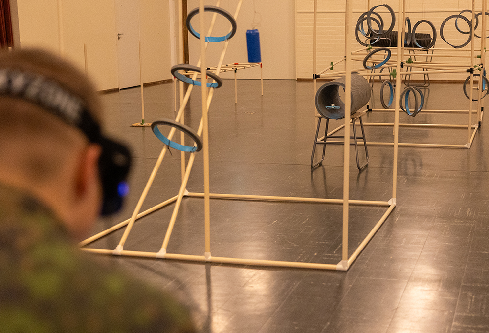 Tämän kaltaiset harjoitukset ovat keskeisessä osassa 2/25-saapumiserän varusmiehille, jotka opettelevat lennättämään FPV-mikrolennokkeja. FPV eli "first-person view" viittaa siihen, että lennättäjä näkee maiseman droonin silmin suoralla videonäytöllä.
