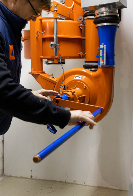 Väestönsuojien ilmanvaihtovaatimukset ovat muuttuneet vuosien aikana. Museon käsin veivattavissa ilmanvaihtolaitteissa tuloilma kulkee hiekkasuodattimen läpi.