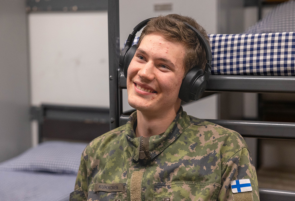 Kaartinjääkäri Samuel Kukkonen kertoo, että iltavapailla on hyvin aikaa kuunnella musiikkia. Kuva: Patrik Vuori