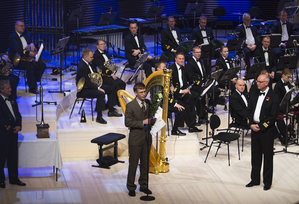 Puolustusvoimien varusmiessoittokunnan konserttimestarina toiminut ylikersantti (res.) Seppo Pohjoisaho palkittiin konsertissa vuoden sotilasmuusikkona.