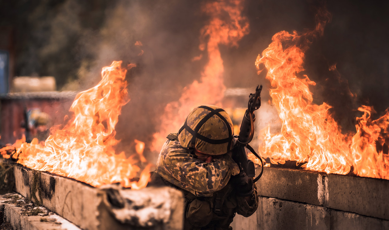 Haukkamäki livahtaa jututtamaan jonossa seisovia varusmiehiä harjoituksen lähentyessä loppuaan. Napalmin liekit alkavat jo himmetä, vaikka rata palaa jo toista kertaa. Viimeistenkin loimujen sammuessa kouluttajienkin päivä alkaa olla pulkassa.