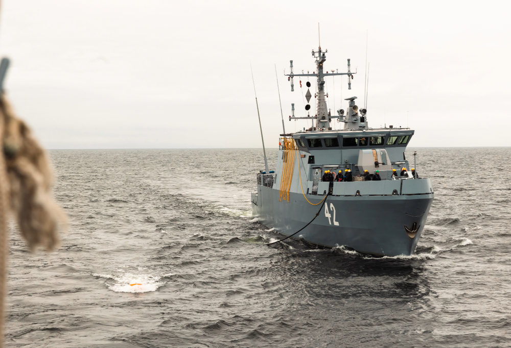 Tankkauksen merellä mahdollistaa saksalainen huoltoalus FGS Mosel. Satametrinen Mosel on huomattavasti suurempi kuin Suomen Merivoimien nykyiset suurimmat alukset, joskin ensi keväänä Puolustusvoimille luovutettava ensimmäinen Pohjanmaa-luokan alus on sitä suurempi.