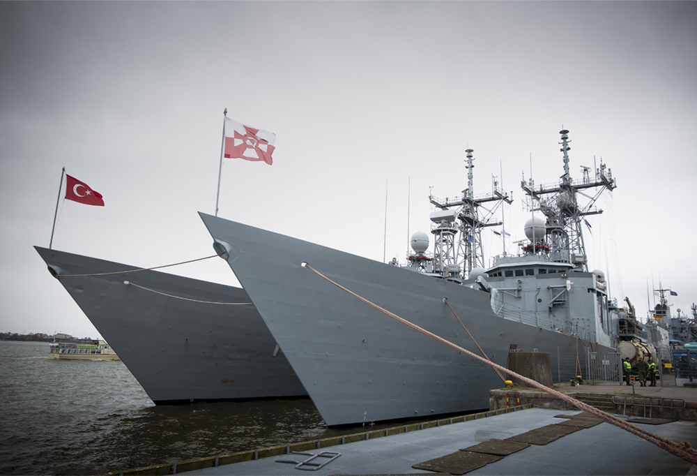 Turkkilainen fregatti TCG Gökova on nähtävillä Katajanokan satamassa 10. - 13. toukokuuta.