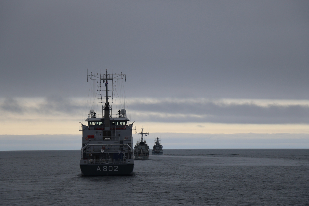 Miinantorjuntaosastoon kuuluu useita aluksia. Kuva: Standing NATO Mine Countermeasures Group One