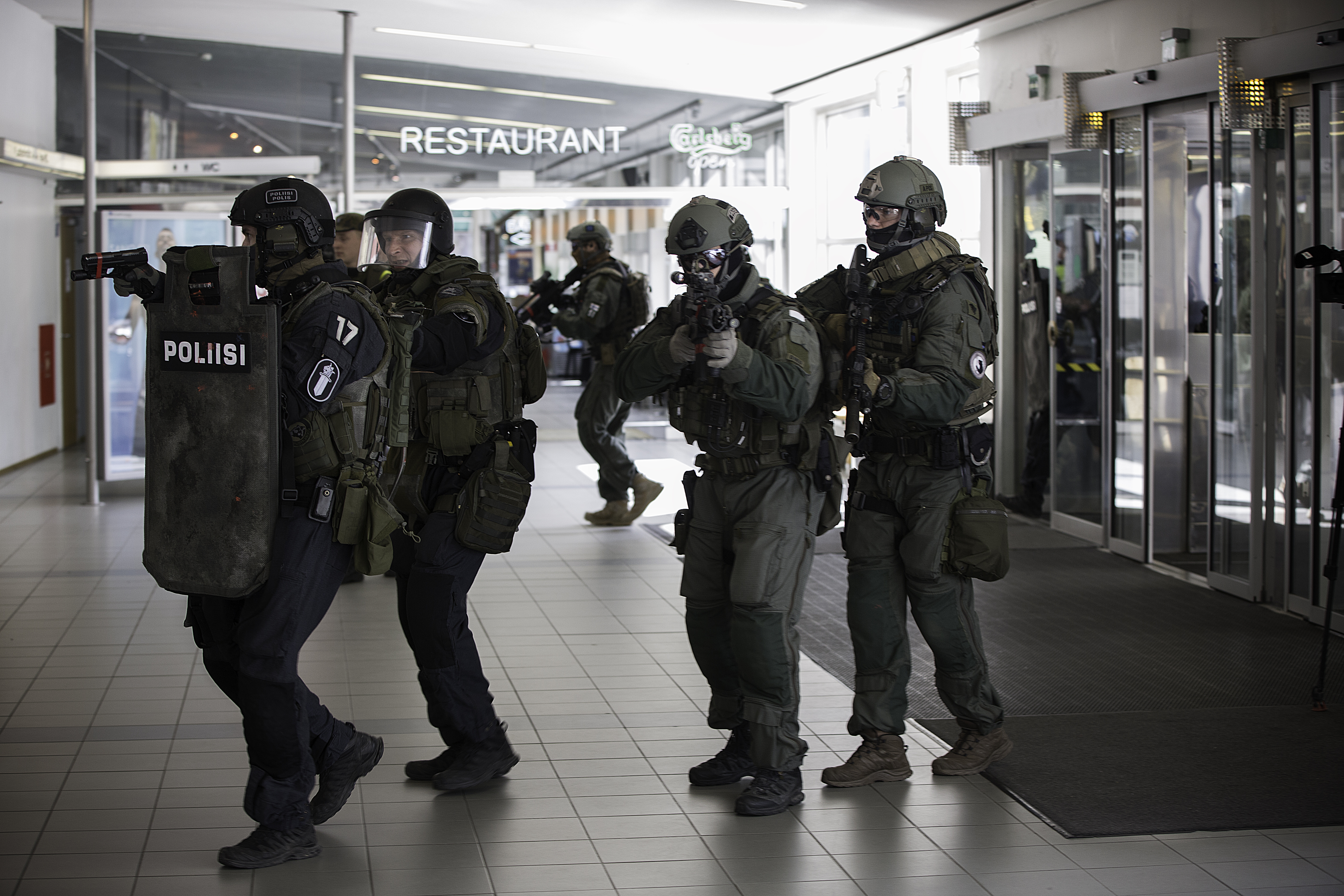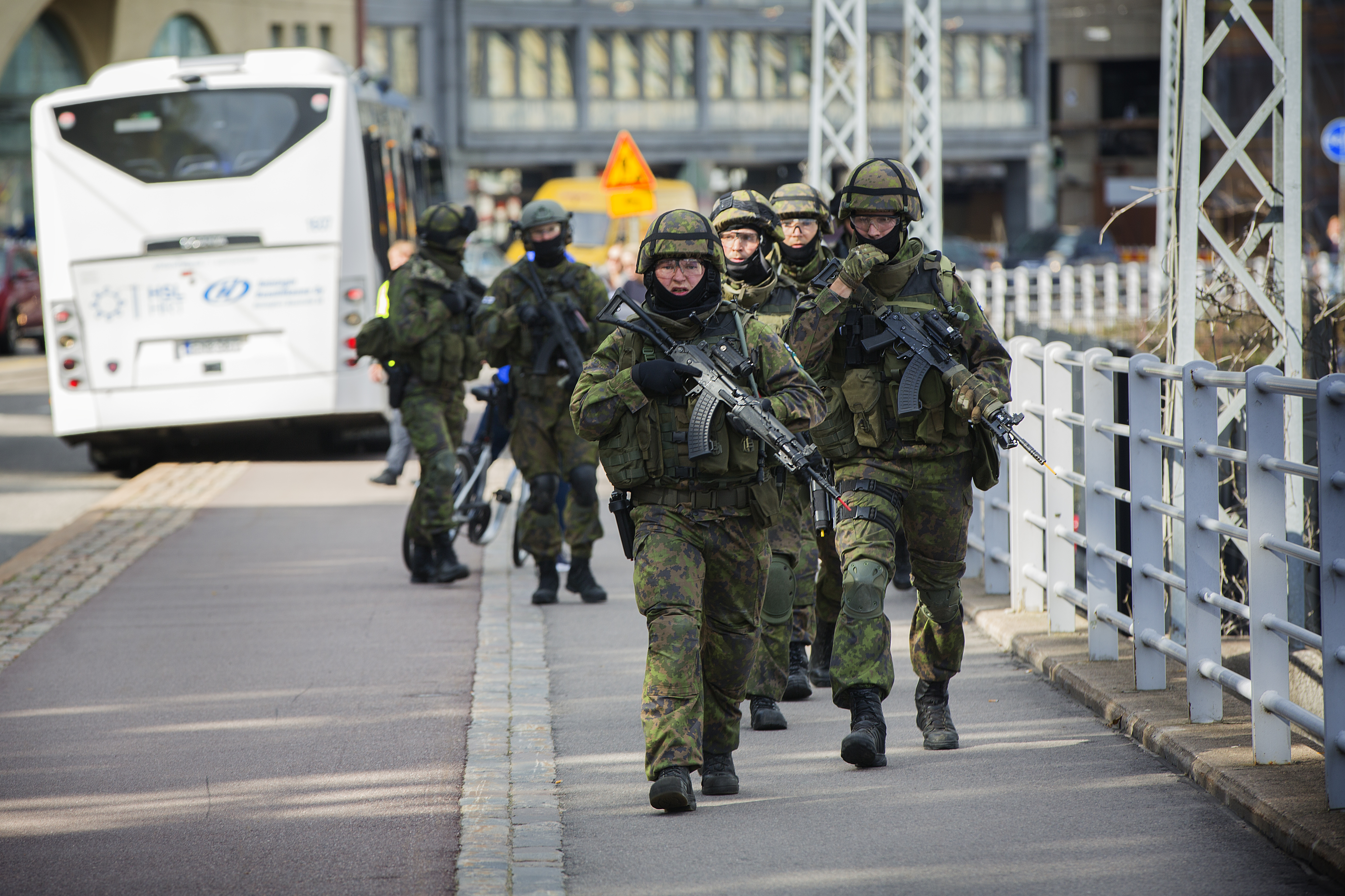 Paikallispuolustusharjoitukset käynnistyivät eri puolilla Suomea. Helsingin harjoituksessa nähtiin panttivankidraamaa.