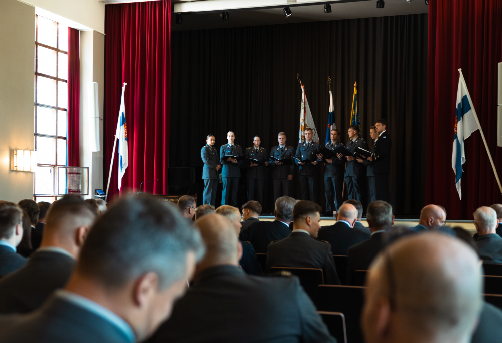 Päiväjuhlassa pidettiin Kadettikuoron esiintymisen ohella juhlapuheita sekä julkaistiin Kadettitoverikunnan historiikki. Kuva: Eetu Kolehmainen