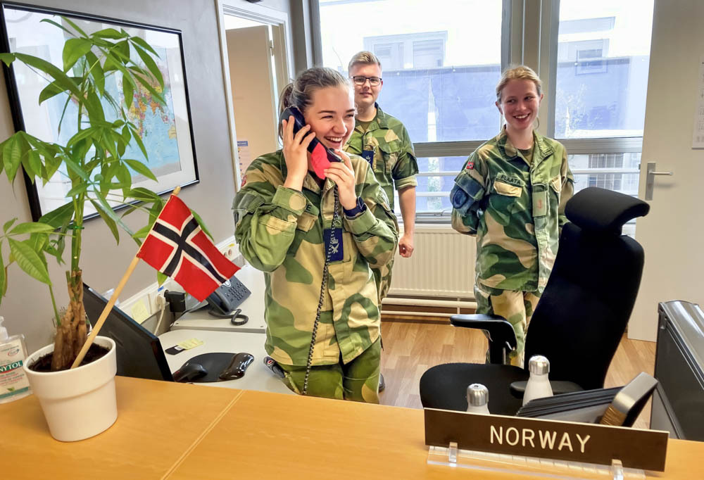 Norjalaiset varusmiehet, lentosotamiehet Marte Lynne ja Jonas Galtung sekä matruusi Henie Flaata, suorittavat varusmiespalvelustaan Belgian Monsissa Naton operaatioesikunnassa SHAPE:ssa. Sieltä löytyy Norjan kansallisen sotilasedustajan toimisto, jossa varusmiehet suorittavat tehtäviään.