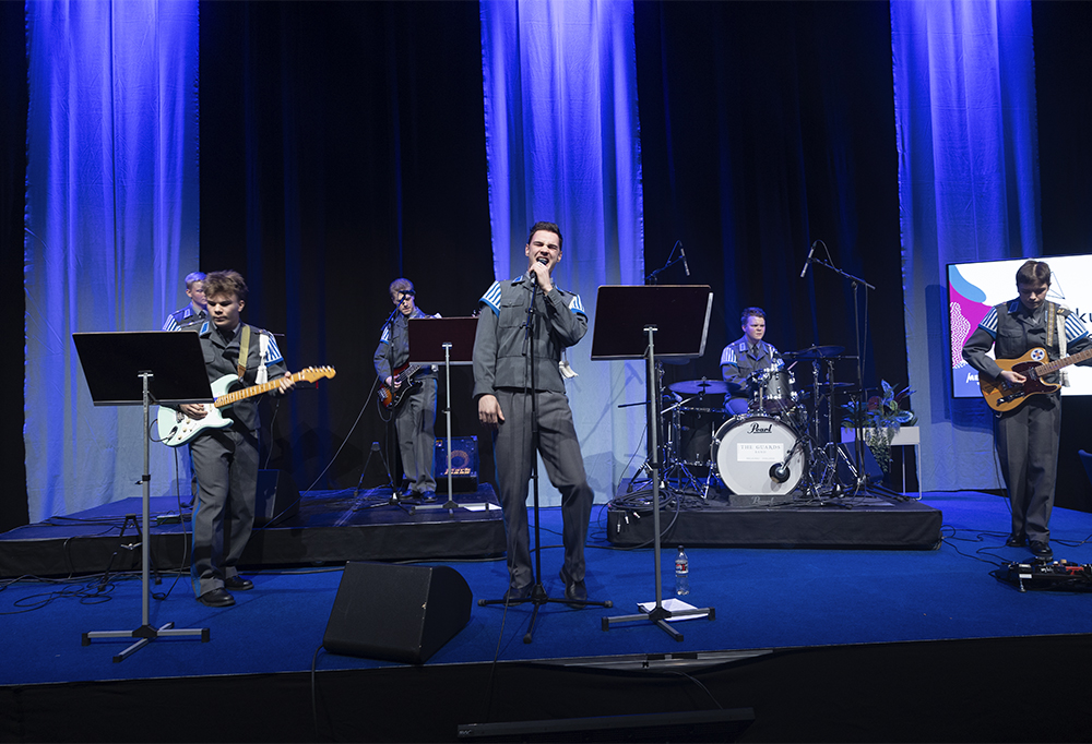 Studia-messut huipentuivat Kaartin jääkärirykmentin varusmiesbändin vauhdikkaaseen esitykseen. Kuva: Kaapo Korhonen