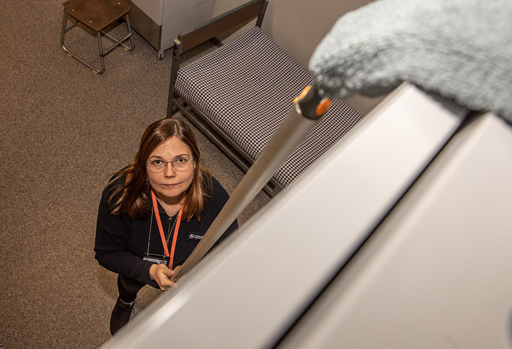 Puolustuskiinteistöjen palvelupäällikkö Terhi Kulmala kertoo työnjaon olevan keskiössä tehokkaassa siivouspalveluksessa.