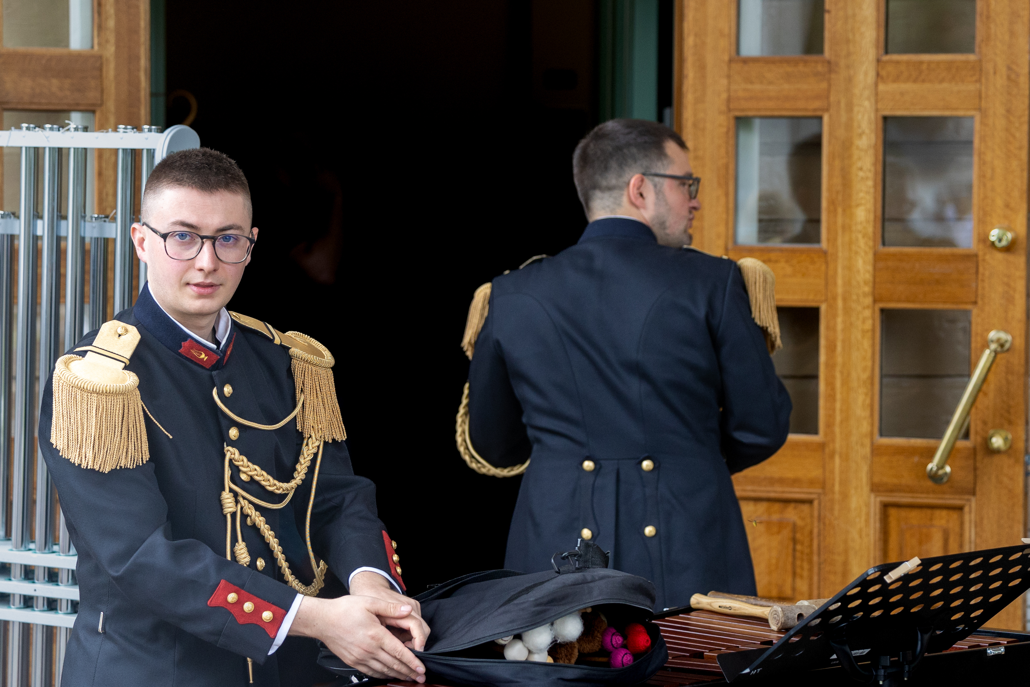 Ruotsin kuninkaallisen ratsuväen soittokunnan tuubansoittaja Göran Christersson (kesk.) on vieraillut Hamina Tattoossa kerran aiemmin muusikkona. Kuva: Patrik Vuori